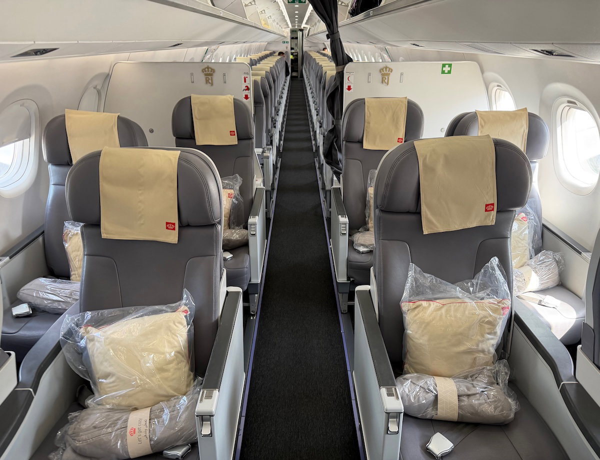 Historically, Royal Jordanian’s previous generation Embraer aircraft had business class seats in a 1-2 layout, compared to the 2-2 layout in economy, which is what you’d expect for such a plane. However, the airline has decided to introduce a new product on its latest jets, in a 2-2 configuration… with a catch.