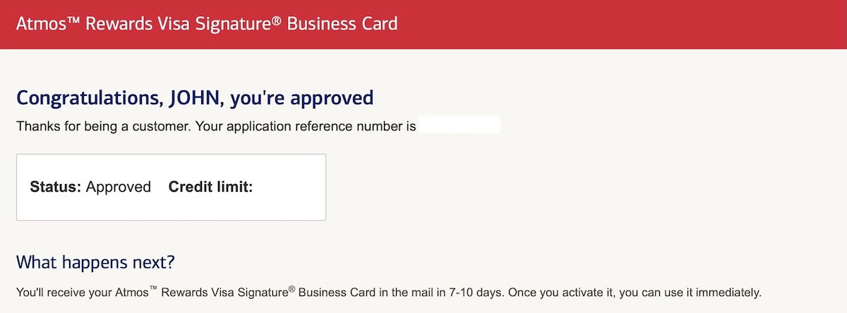 With that being approved, we figured we’d also try submitting an application for the Atmos Rewards Business Card, given that people are eligible for both cards, and the bonuses are both huge. Fortunately he got an instant approval there as well!