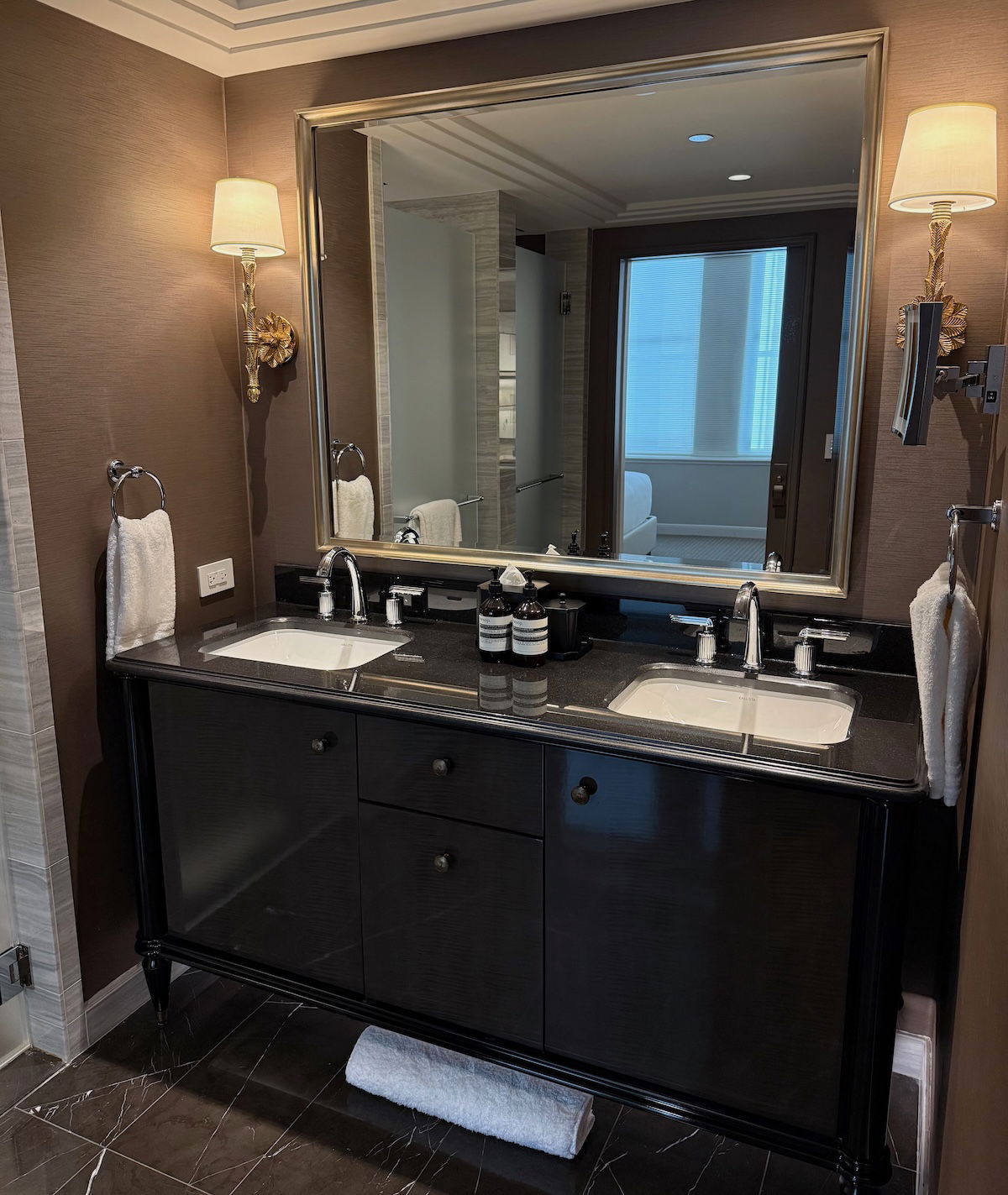 A vast majority of the rooms at the Waldorf Astoria New York are suites, though even the limited number of non-suites are spacious, with the deluxe king rooms (which I stayed in) measuring 575 square feet. I thought it felt more like a junior suite than anything, and I appreciated the double sinks, soaking tub, walk-in shower, etc.