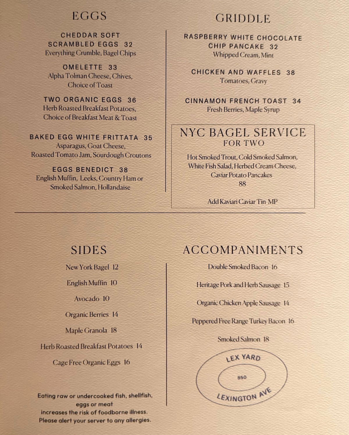 The Waldorf Astoria New York has three food & beverage outlets — there’s Peacock Alley (the iconic lobby bar) Lex Yard (the signature restaurant), and Yoshoku (a Japanese restaurant). The Japanese restaurant was closed during our stay.