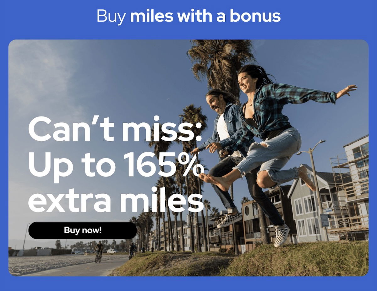 - Buy 51,000-200,000 miles, receive a 165% bonus