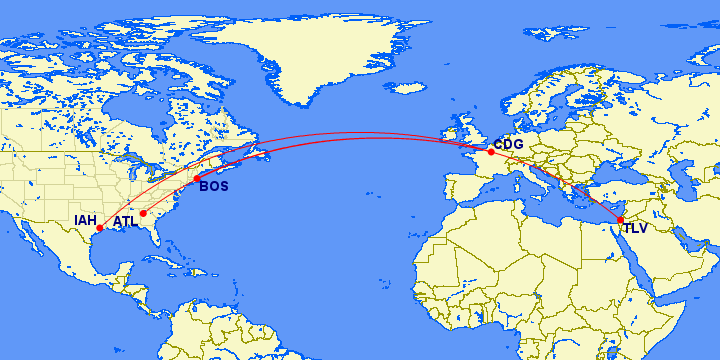 AF963 Tel Aviv to Paris departing 3:55PM arriving 7:40PM