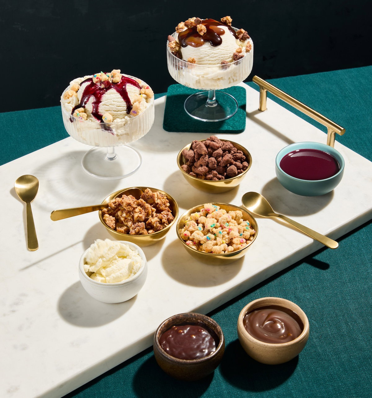 - Following main courses, there will be a dessert cart, showcasing the customizable Salt & Straw sundae service, along with other options