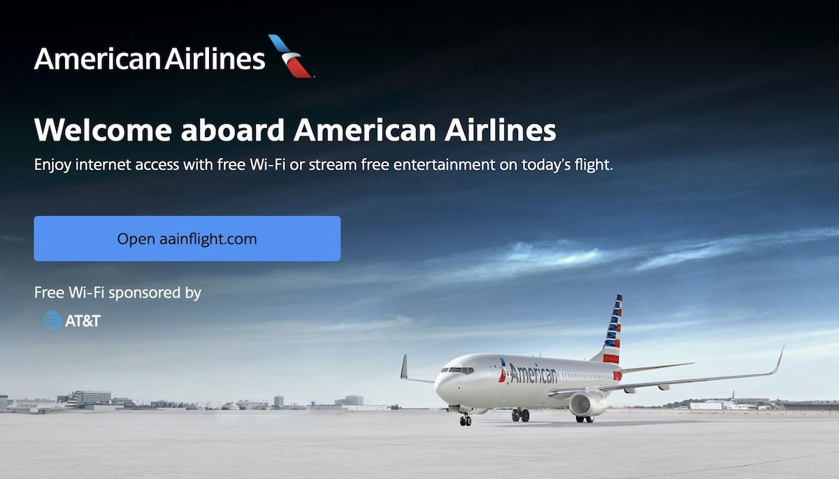 AA website: "AAdvantage® members have access to free Wi-Fi on most domestic and select international flights, sponsored by AT&T.