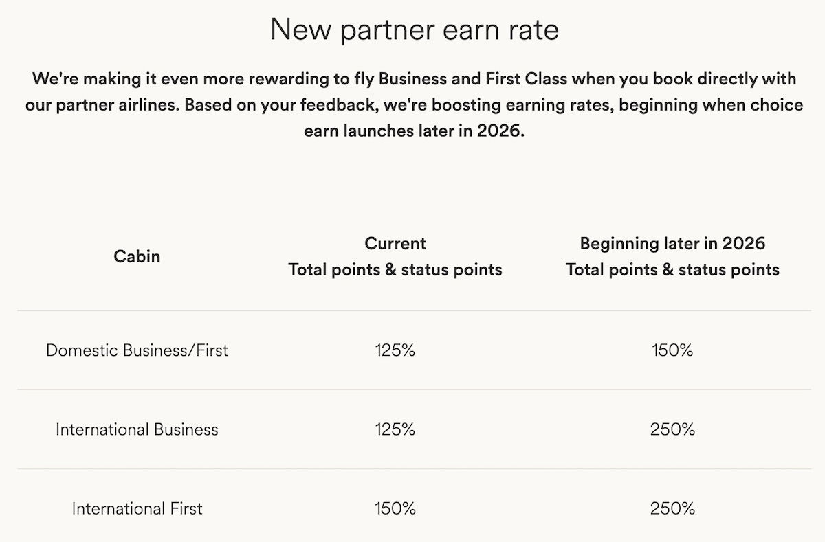At some points “later in 2026,” Atmos Rewards will be improving points earning rates for first and business class tickets on partner airlines, when booking directly with partners. The changes are considerable, with international business class going from earning 125% points, to earning 250% points.