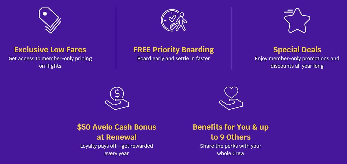 Avelo Airlines has launched a new membership program, named Avelo PLUS. It costs $49 for the first year, and $99 in subsequent years. For that, you receive a discount on flights, priority boarding, access to promotions, and a $50 Avelo voucher on renewal every year.