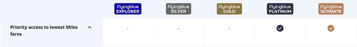 When you look at the Flying Blue elite benefits page, you’ll now see “Priority access to lowest Miles fares” described as a benefit for Platinum and Ultimate members, with the following description: