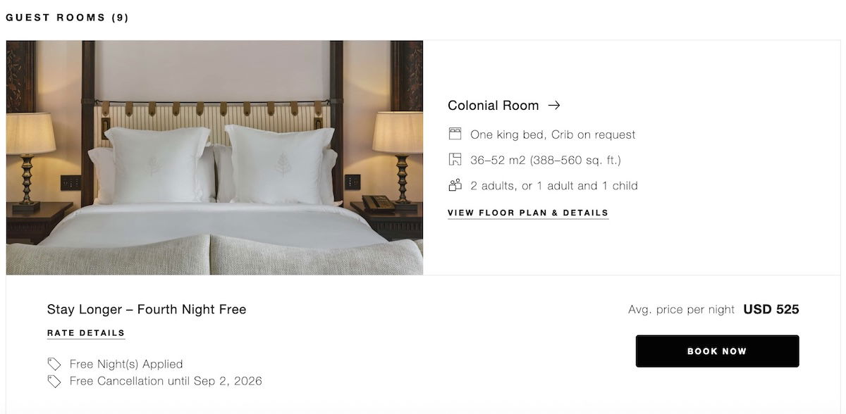 First, it’s worth mentioning that it always makes sense to keep an eye on the hotel’s offers page, as there are some promotions, like an extra property credit on stays of up to three nights, a fourth night free on stays of four nights, etc.