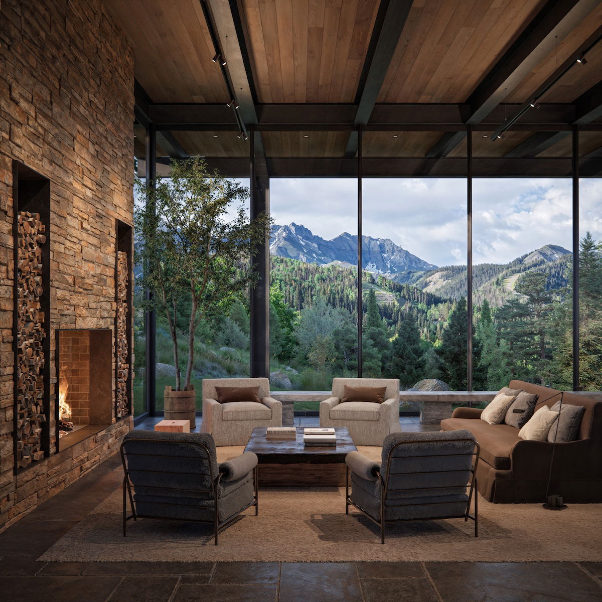 The property will span three connected buildings, with architecture led by Olson Kundig, and interiors by Clements Design. The design philosophy is both inspired by and curated to showcase the surrounding landscape, with floor-to-ceiling windows and natural materials throughout.