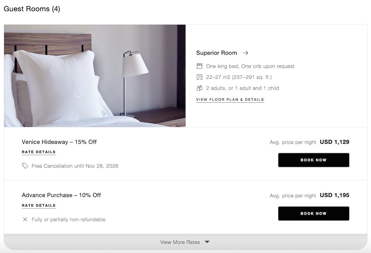 With the Four Seasons Venice now bookable, what are rates like? As you’d expect, there’s quite a bit of seasonal variation, with summer being most expensive, and winter being cheapest (admittedly the hotel is only opening in late August, which misses the peak summer rush).