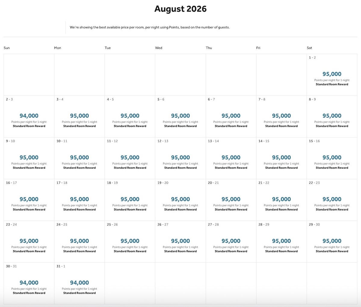 In summer, I see rates starting at around $450 or 95,000 Hilton Honors points per night, while in winter, I see rates starting at around $250 or 55,000 Hilton Honors points per night. With Hilton increasingly matching award costs to cash costs, it’s harder to get outsized value with points.