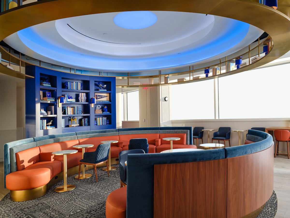 The lounge design is supposed to bring a NYC apartment-style aesthetic to the airport, with art deco design, curated local art, and playful nods to JetBlue’s history. The lounge boasts high speed Wi-Fi, ample power outlets, a game room, open seating, and quiet areas, to give space to the different needs of travelers looking to socialize, work, and relax.