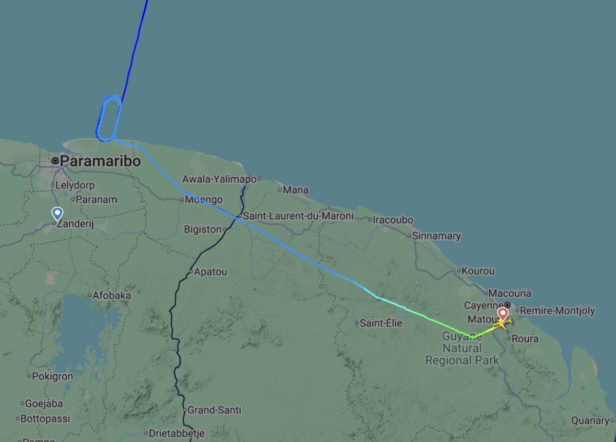The plane then remained on the ground until 3:58PM local time, at which point air traffic control staffing issues in Paramaribo were figured out. The plane landed in Cayenne at 4:33PM, after a quick 35-minute flight. In the end, the flight arrived just under three hours behind schedule.