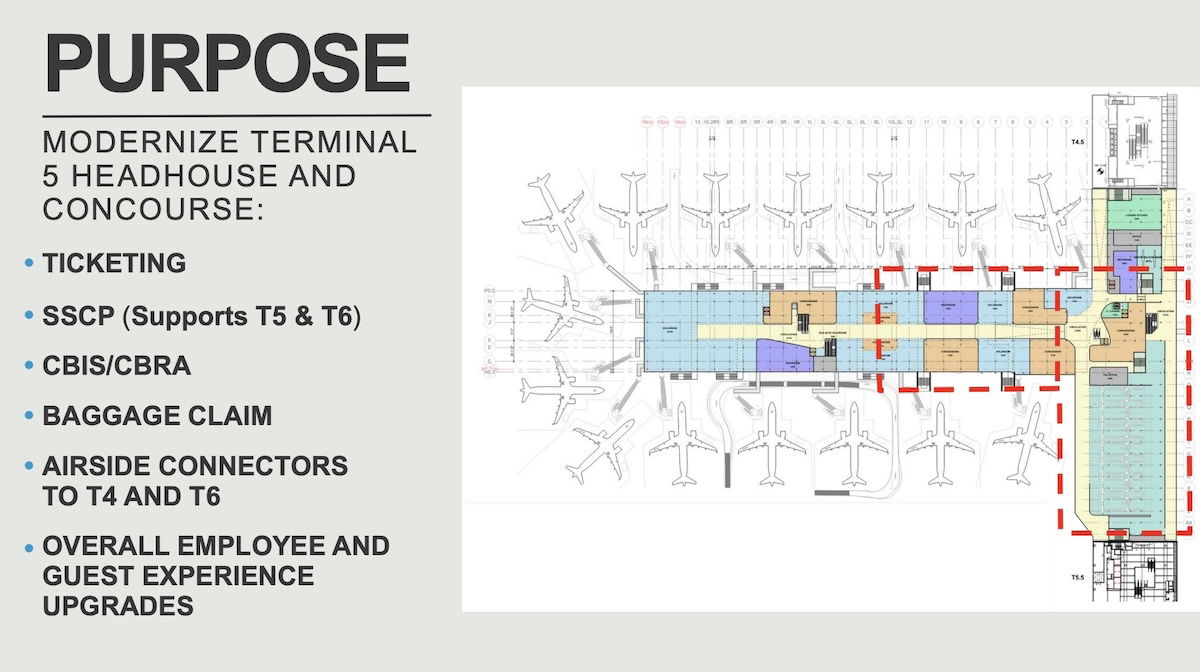 Upgrades to the terminal will include replacing all systems (mechanical, electrical, and plumbing), upgrading ticketing, security, baggage claim, and concessions, improving airside connectivity with other terminals, and more.