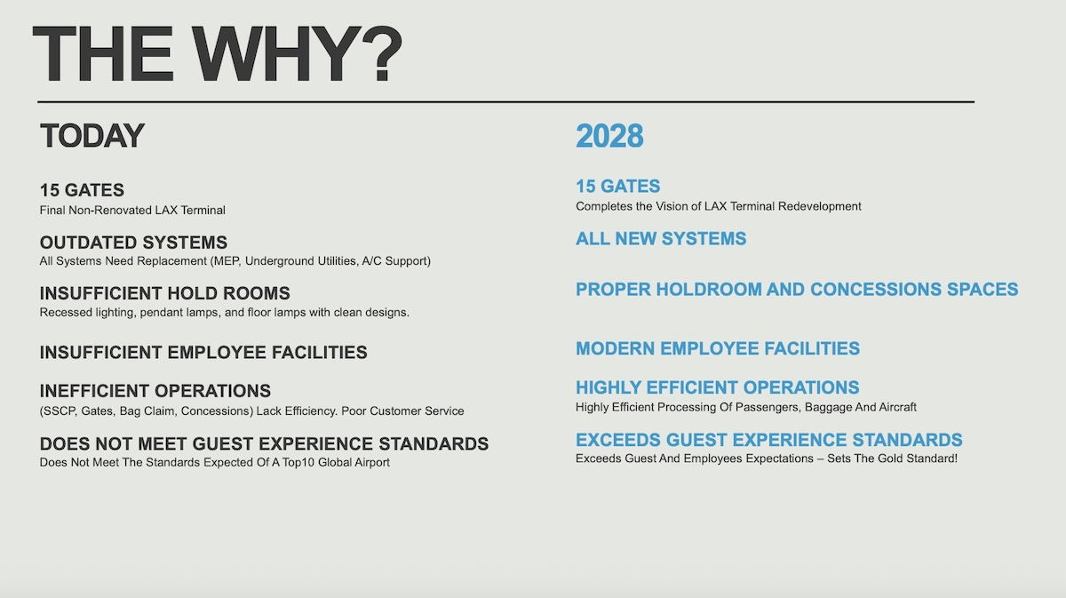 LAX Terminal 5 is undergoing a $1.7 billion redevelopment. Interestingly, the terminal will maintain 15 gates, so it’s not actually getting bigger, but it’s just supposed to get nicer.