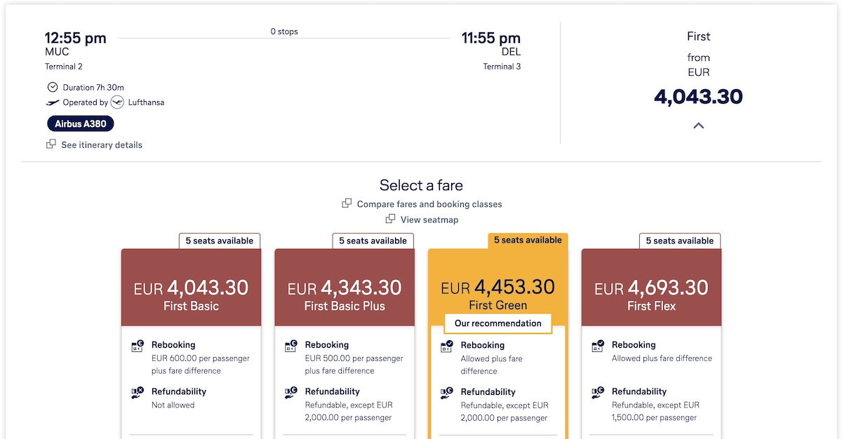 For example, take a “First Flex” fare from Munich (MUC) to Chicago (ORD), where you’ll see that under “Refundability” it shows “Allowed,” so the ticket can be refunded at no cost.