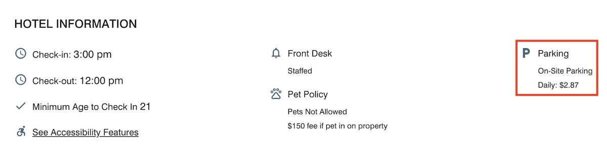 - The hotel recently decided to add a $2.87 fee for parking, which was previously free; okay, I guess that’s their prerogative…
