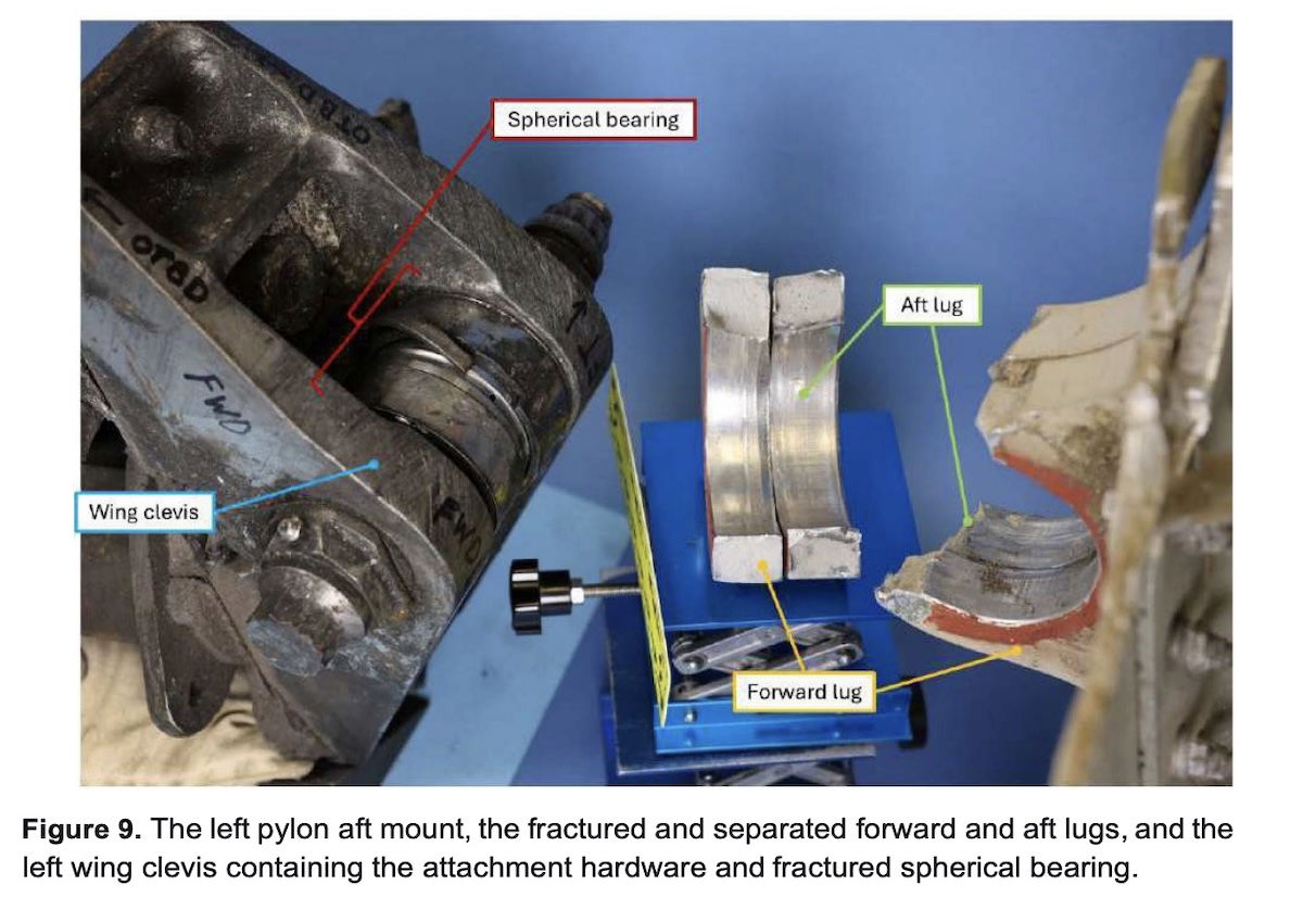 The NTSB’s preliminary report gives us a good sense of what happened. Of course it’s worth emphasizing that this isn’t the final report, but it definitely clears some important things up. Specifically, the NTSB found fatigue in the left pylon aft mount lug, which connects the engine to the wing.