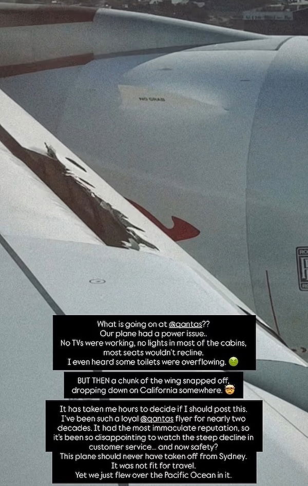 As you’d expect, the return flight, QF12, was canceled. The plane has now been grounded in Los Angeles since its landing on Sunday. Maintenance personnel are working on addressing these issues, including fixing the wing, of course.