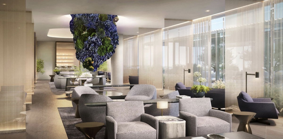 The lounge was designed by global studio Yabu Pushelberg, with the material palette including limestone, oak wood, bronze detailing, and textured plaster elements. This is intended to draw inspiration from the natural landscapes of Saudi Arabia.