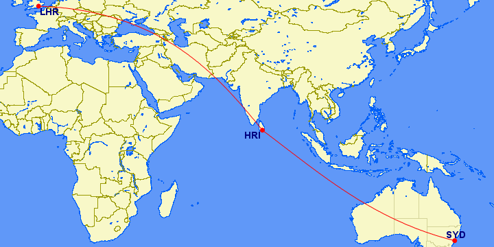 The big issue with Sri Lanka geographically (beyond other issues like fuel or terminal capacity) is it suddenly involves backtracking for a lot of the Europe --> India traffic, which is a huge market for the Gulf carriers.