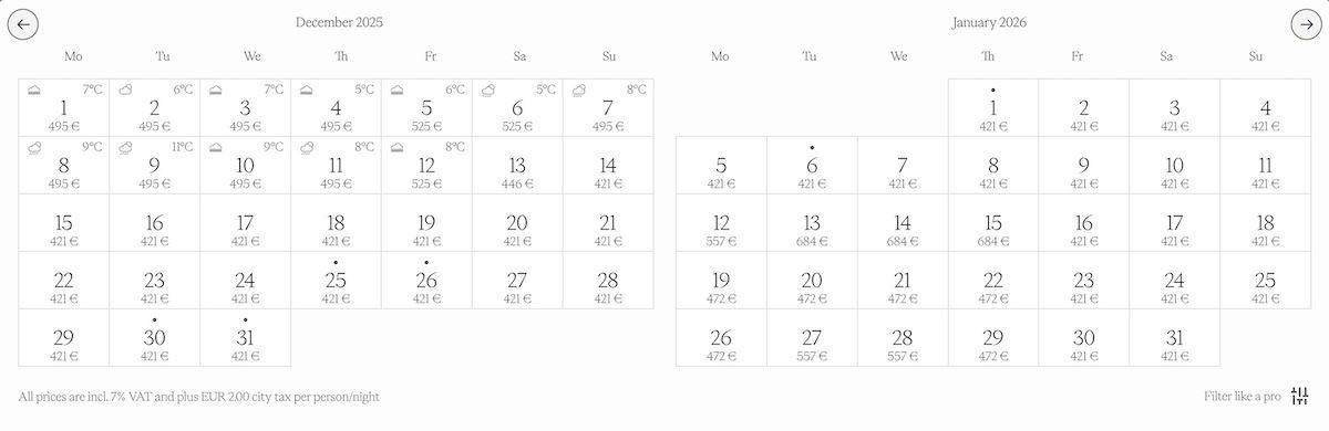 As mentioned above, The Florentin Frankfurt is opening as of December 2025. So, what is pricing like? I imagine pricing will change over time, given that the hotel is brand new, and it takes time to optimize pricing. As things currently stand, the absolute lowest rate I see is €421 per night for a base room, but costs go up from there.