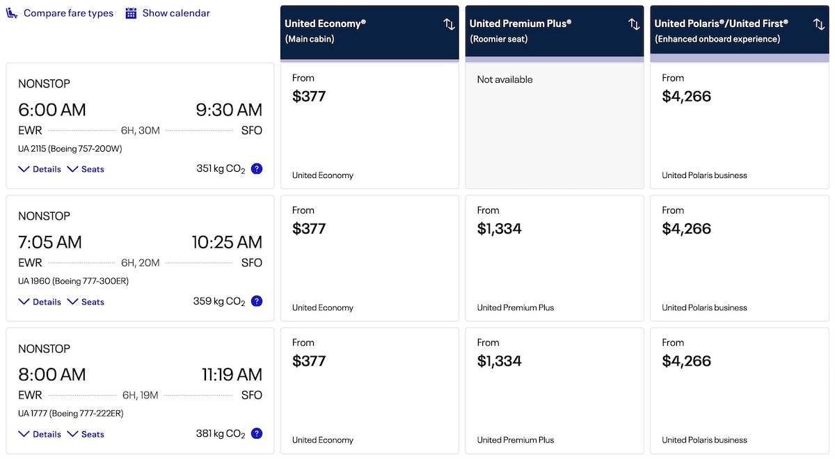 In the interest of clarity, let me emphasize that this branding applies specifically if booking nonstop flights in those markets. So if you fly from Newark to San Francisco via another airport, you wouldn’t somehow magically be booked in Polaris business class.
