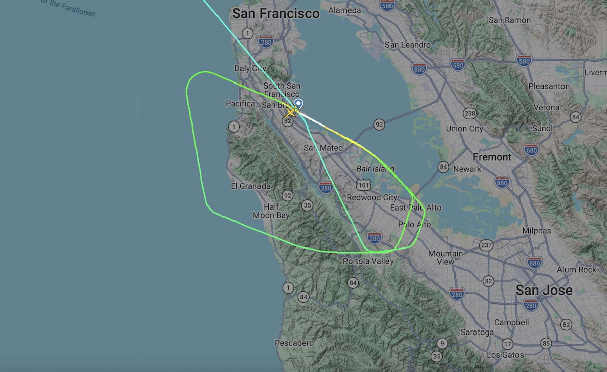 The United Express plane ended up coming back around for another landing, and touched down at 12:22PM, after a total flight time of 67 minutes.