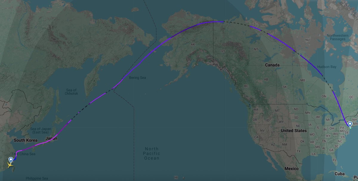As it currently stands, the flight from Fuzhou to New York is blocked at 14hr55min, while the flight from New York to Fuzhou is blocked at 16hr25min. At 7,770 miles, that’s roughly what you’d expect the block time to be, especially with this flight avoiding Russian airspace.