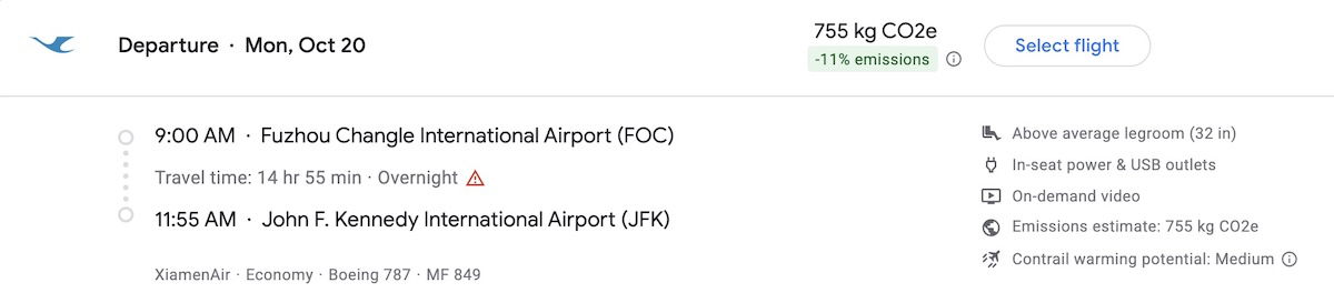 Xiamen Air’s 19hr20min New York to Fuzhou flight