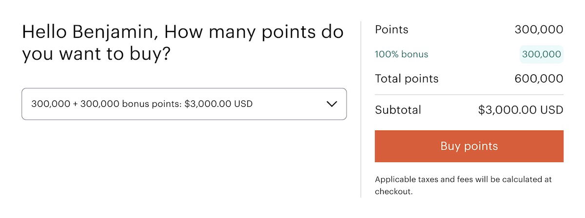 Ordinarily you can buy IHG One Rewards points for as little as one cent each (the pricing isn’t linear), before any discounts or bonuses. With that in mind, if you were eligible for a 100% bonus and purchased 300,000 IHG One Rewards points pre-bonus, you’d receive a total of 600,000 points at a cost of $3,000, which is a rate of 0.5 cents per IHG point.