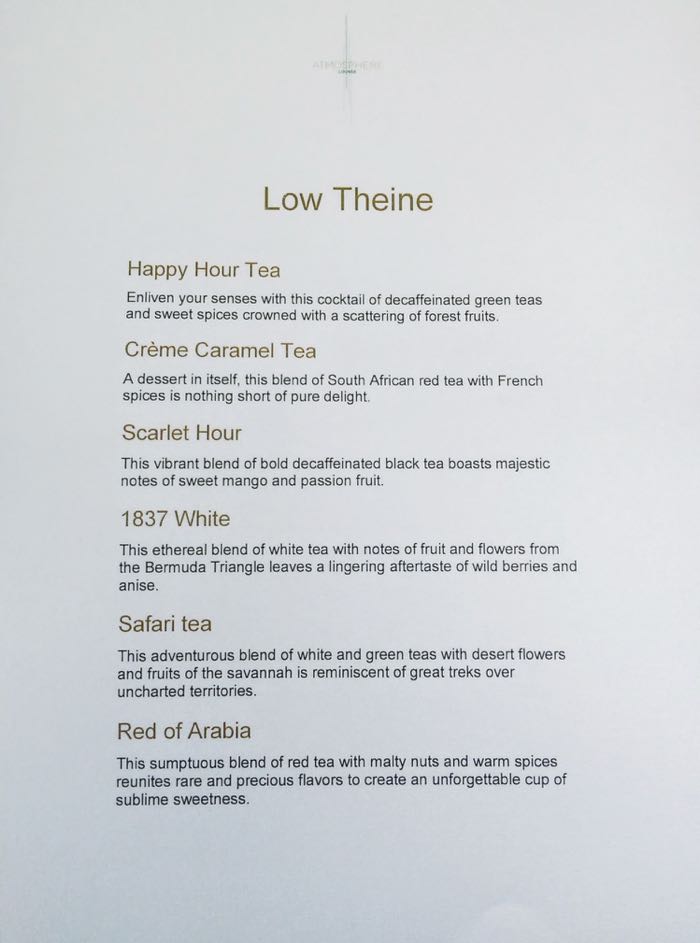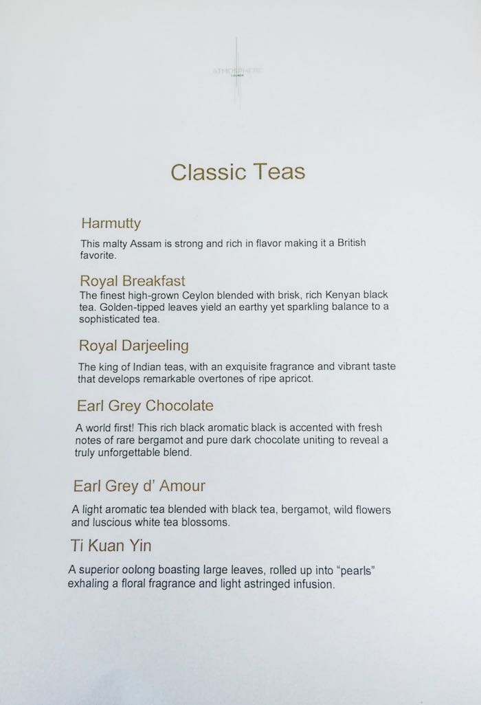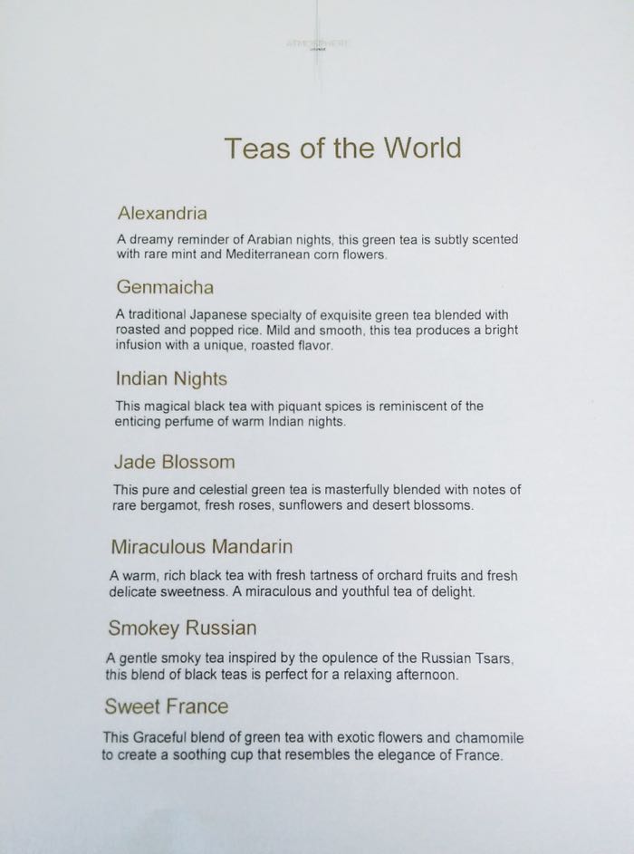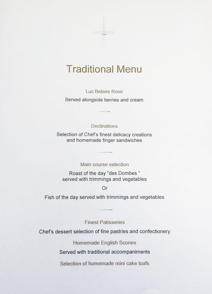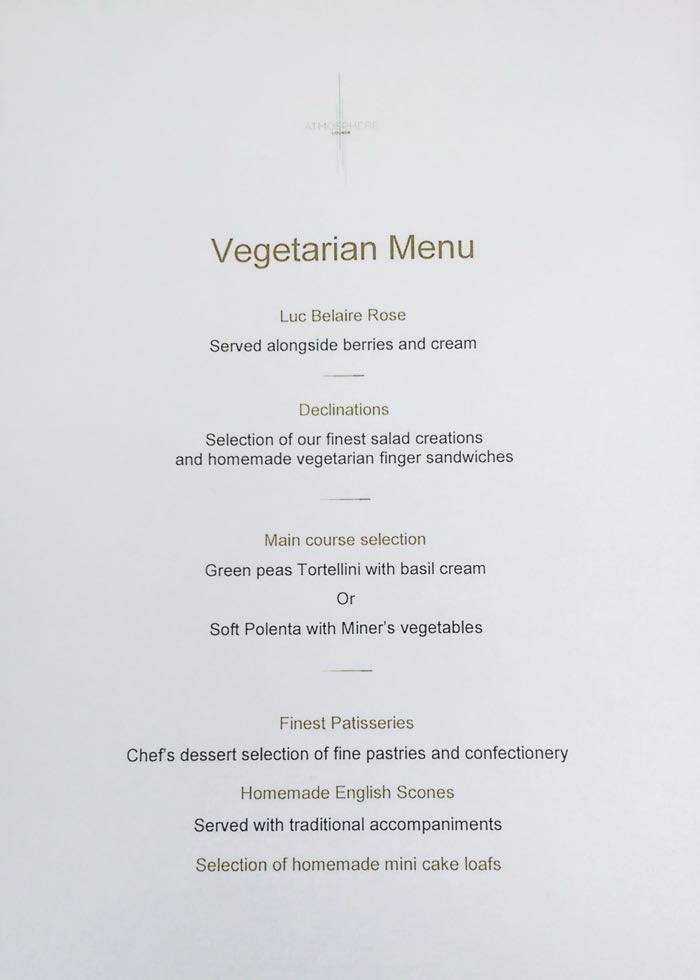 From there, we were presented with tea menus. Both the “traditional” and vegetarian options had two choices for the main course, followed by six pages of beverages (click through to see the full menu):
