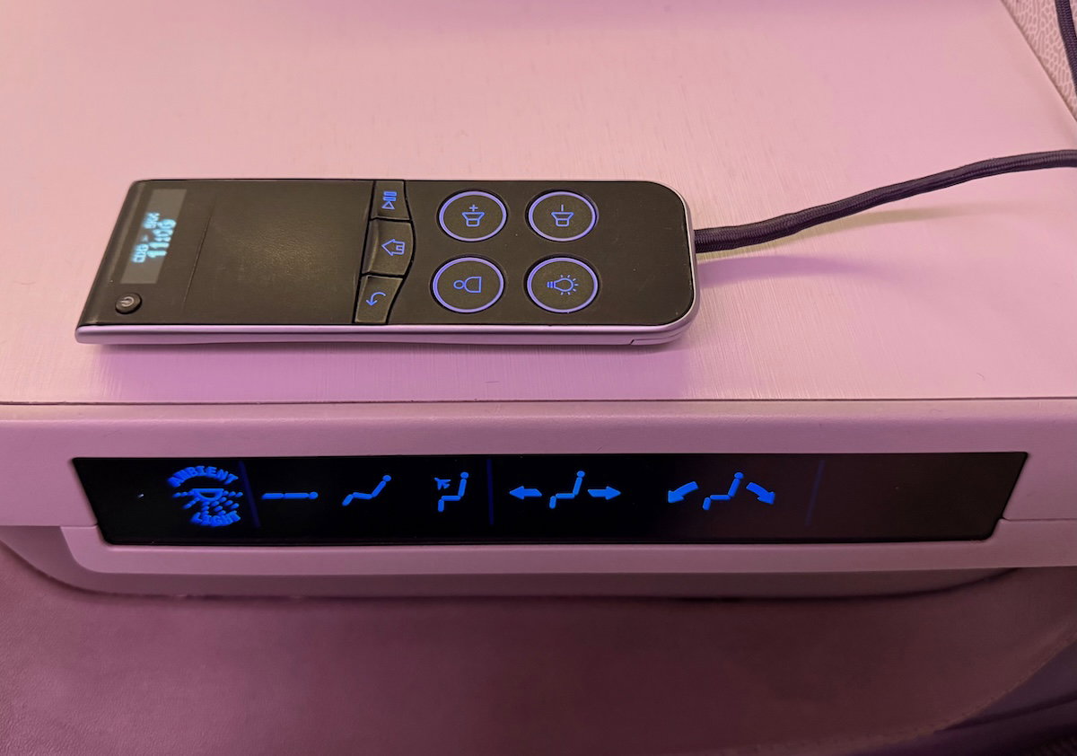 You’ll find the panel with seat controls immediately to the side of the seat, and I found it to almost be annoyingly placed, as my elbow kept accidentally hitting these buttons. For that matter, one thing I really don’t like about this product is how the two armrests aren’t equally positioned — the aisle-side one has very awkward placement, in my opinion.