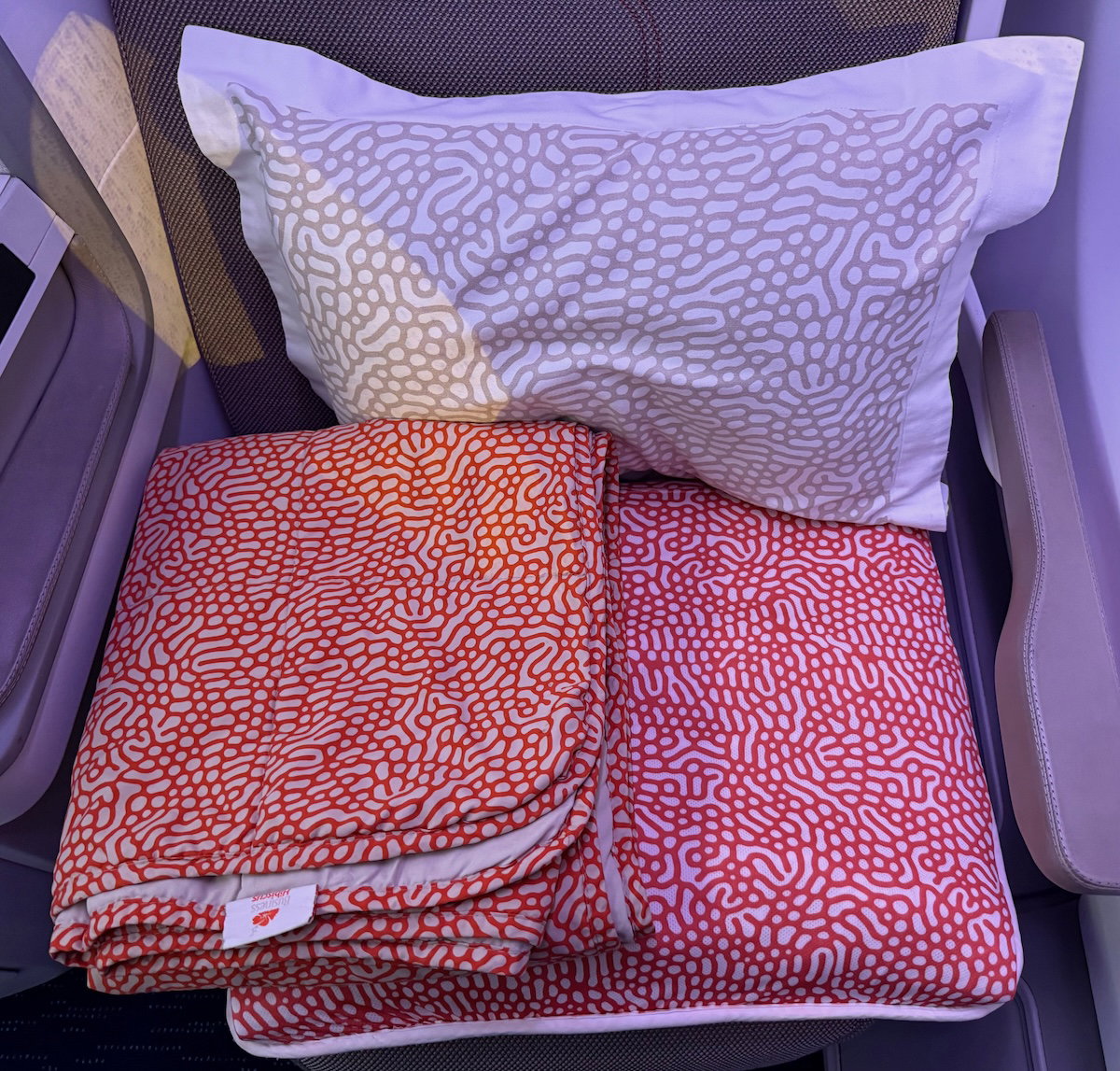 During boarding, the crews immediately offered to put out the mattress pad on the seat, since it can be used for added comfort even when not sleeping.