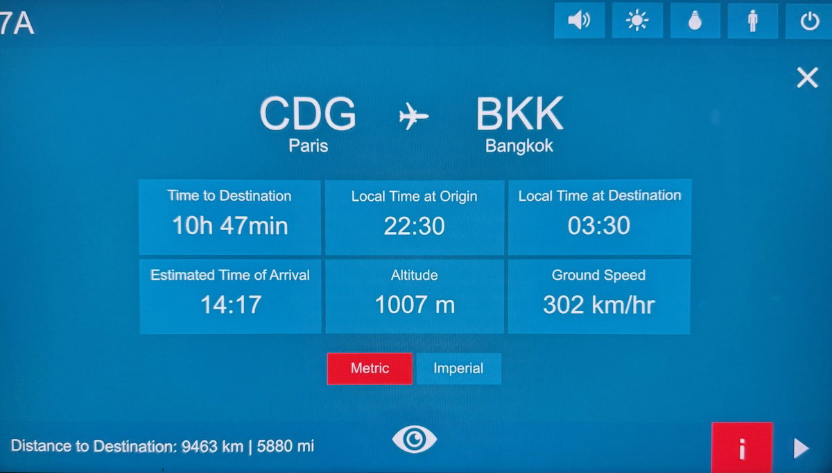 I then woke up with a little over three hours remaining to Bangkok. Unfortunately at this point the map feature became stuck, and just stayed over Pakistan for the rest of the flight, so I’m not sure what exactly happened there.