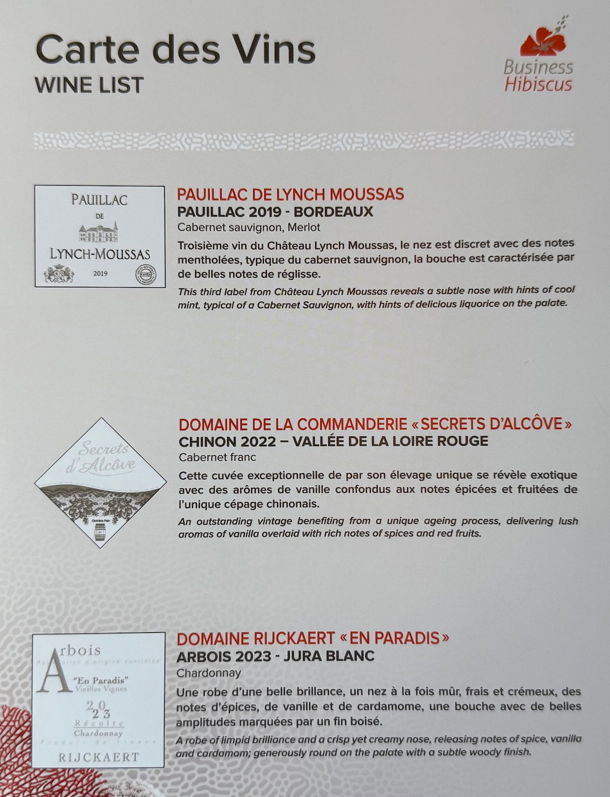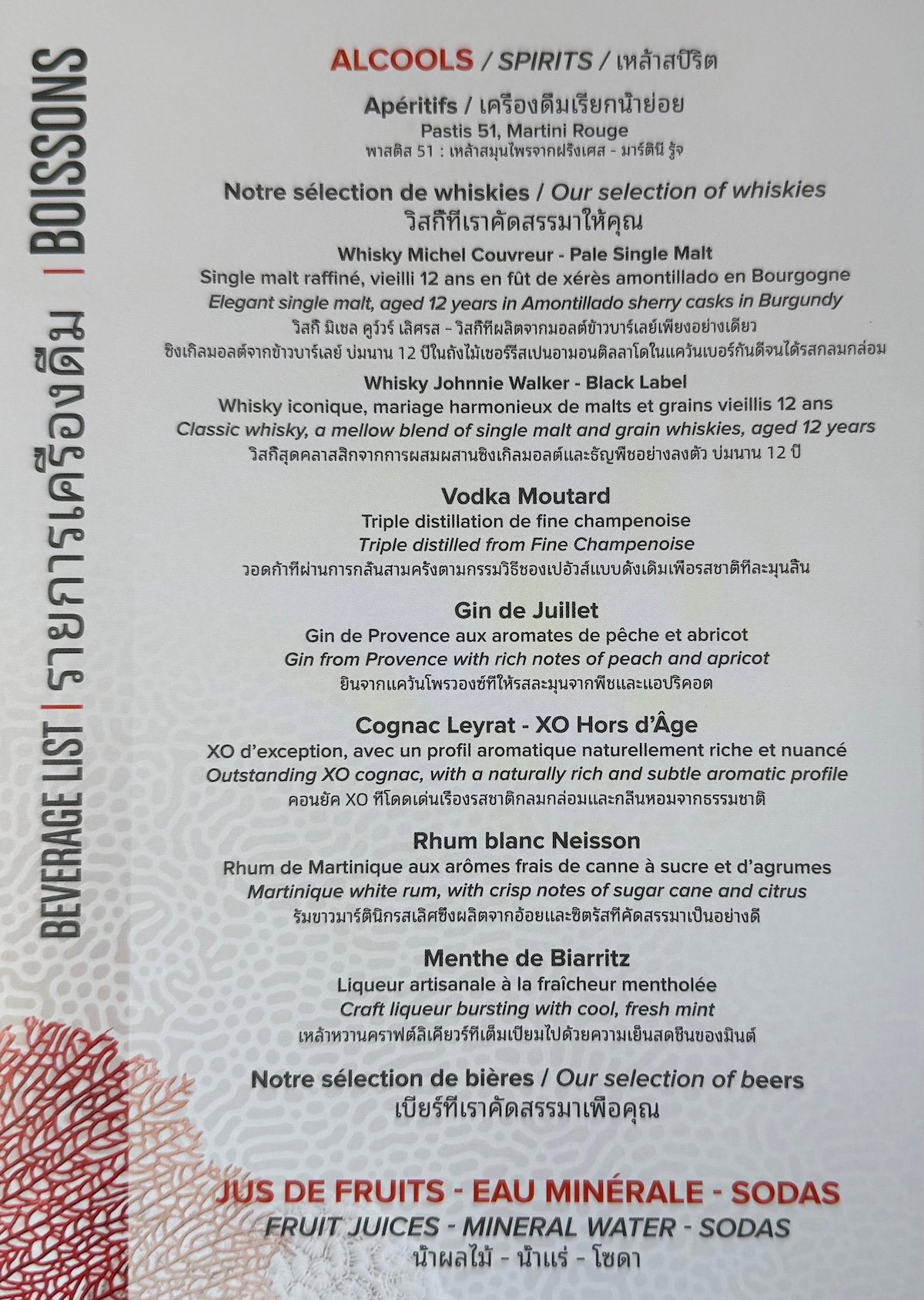 You can find the Aircalin business class drink list below.
