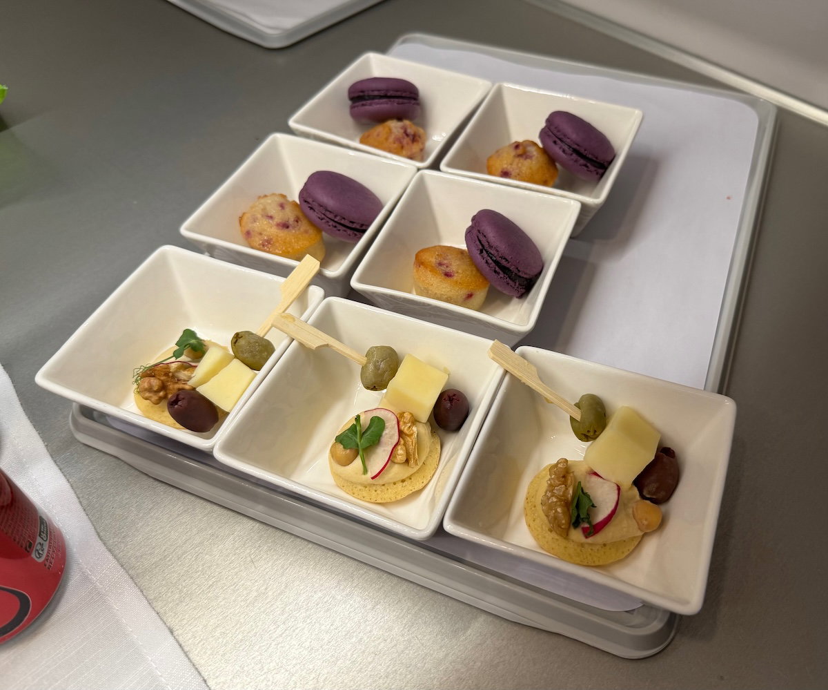 I should also mention that there were some small snacks set up in the forward galley, including sweet and savory items, that passengers could help themselves to.