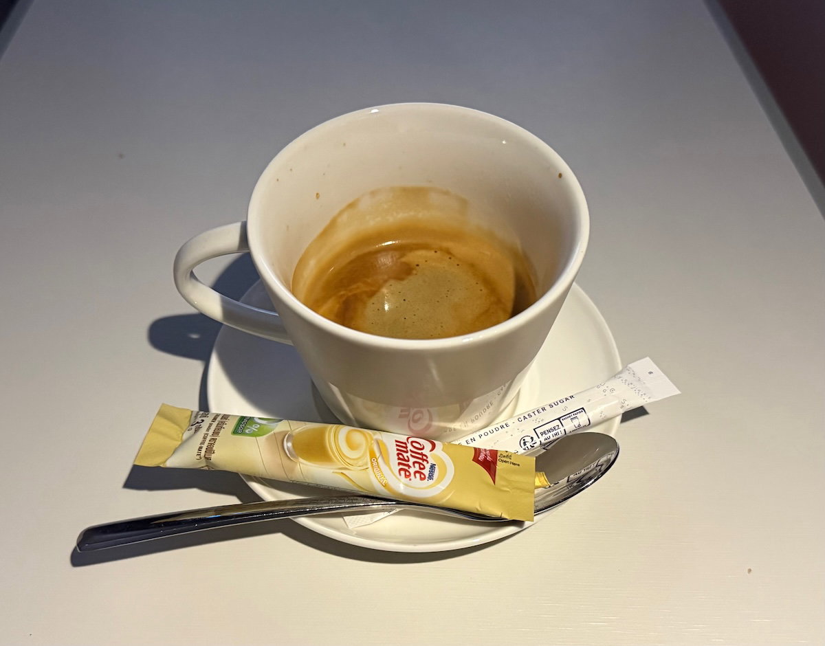 Upon waking up, I first ordered an espresso, which was served with a side of powdered creamer.