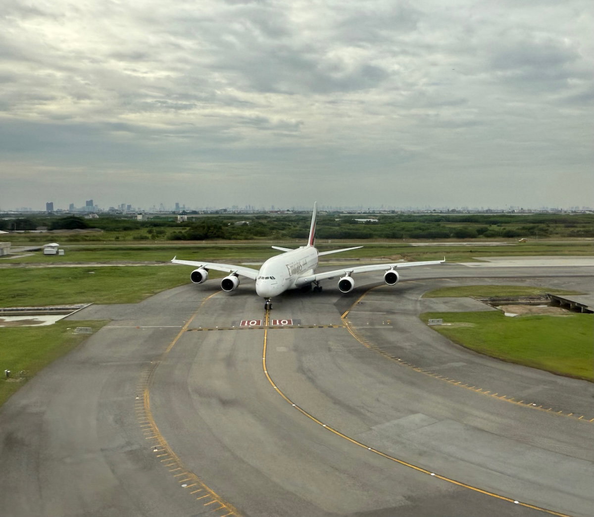 At 2:40PM, we ended up having a perfectly smooth touchdown on runway 1, where an Emirates A380 was waiting for us to clear the runway.