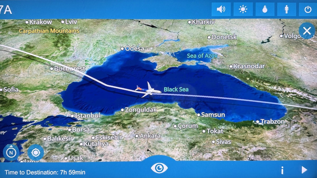 I managed to fall asleep with around eight hours remaining to Bangkok, while passing over the Black Sea.