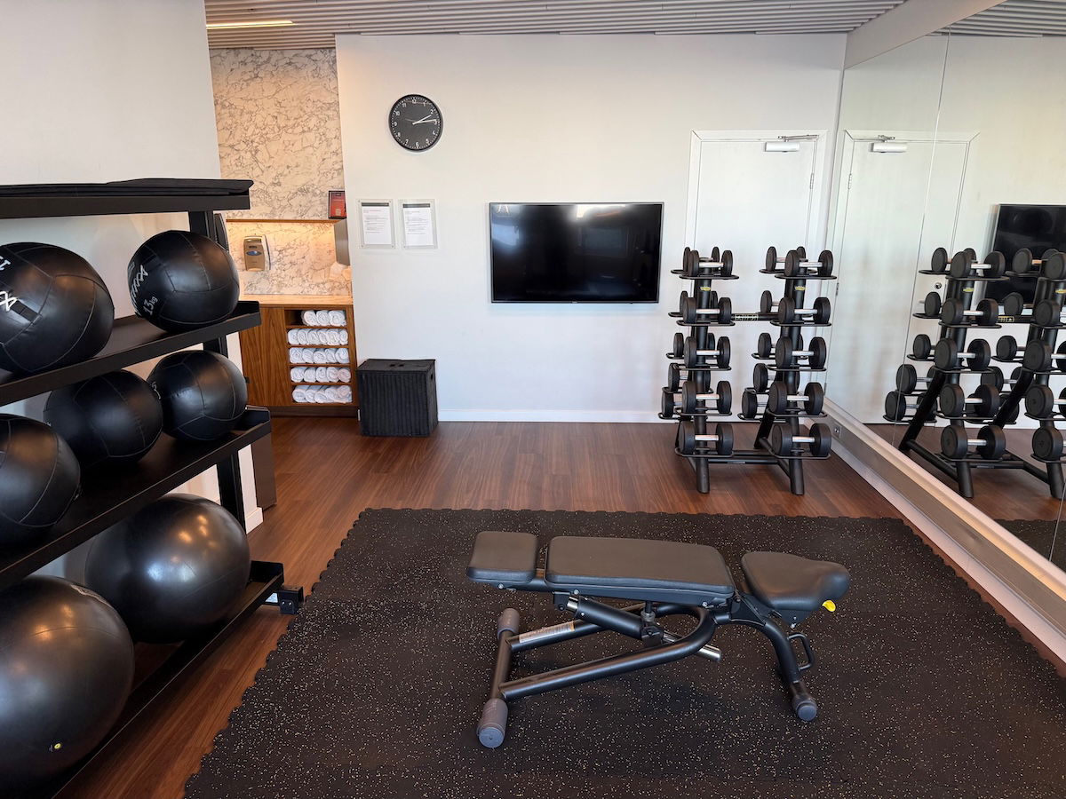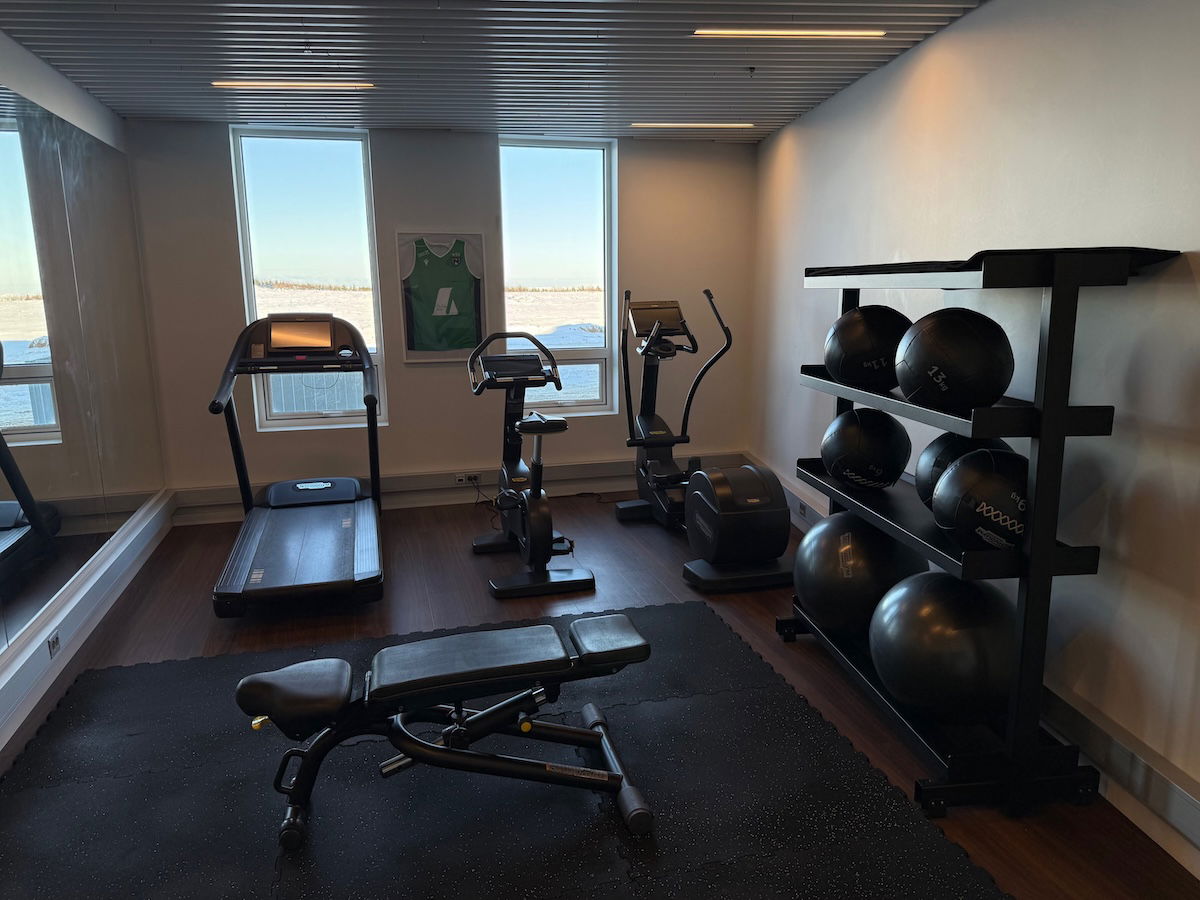 The Courtyard by Marriott Keflavik Airport doesn’t have a spa or pool (unsurprisingly), but it does have a 24/7 gym, located on the lobby level. It’s a basic facility, but better than nothing. It has a treadmill, a bike, an elliptical, some (light) free weights and a bench, and some medicine balls.