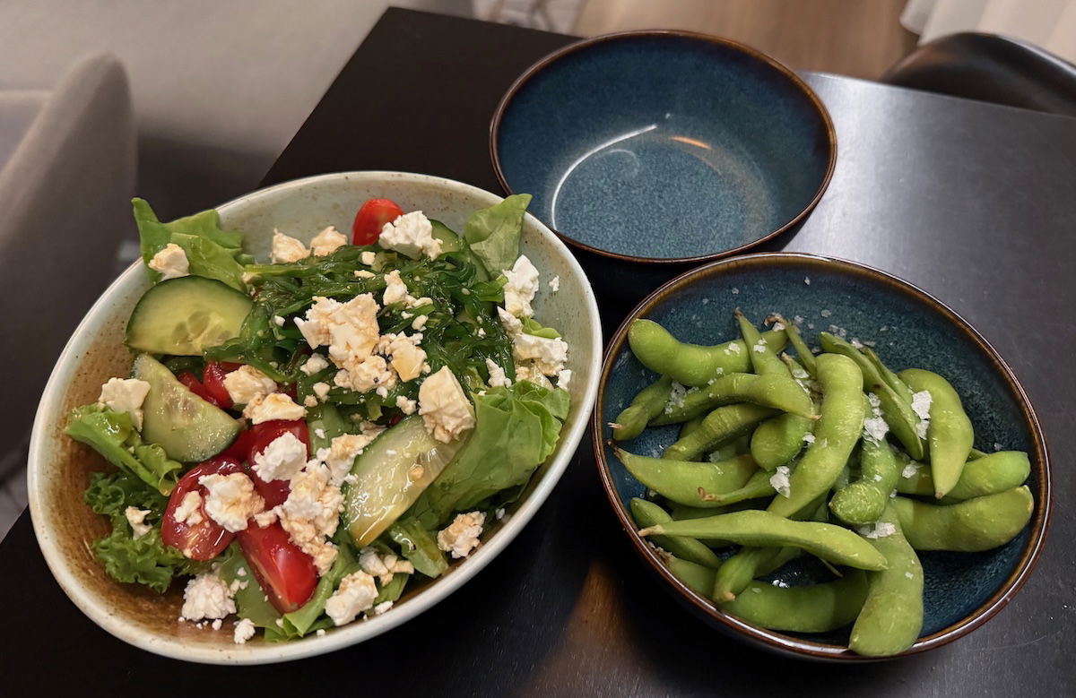 Then for dinner, I wasn’t terribly hungry and was trying to be somewhat healthy, so I ordered some edamame and a salad. The edamame was fine, while the salad was definitely on the basic side, but did the trick.