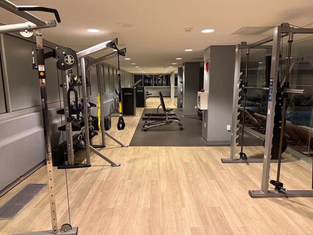 The hotel also has a large gym area, with one room being dedicated to strength training, and another room containing cardio equipment.