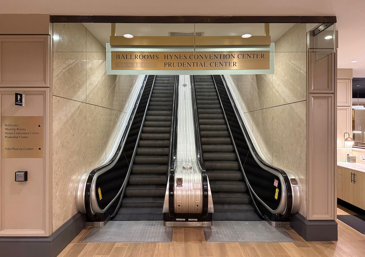 The Sheraton Boston has two sets of elevator banks — the main bank goes up to the 25th floor, while there are separate express elevators that go to the 26th through 29th floors. Our room was on the 28th floor, so we took the express elevators.
