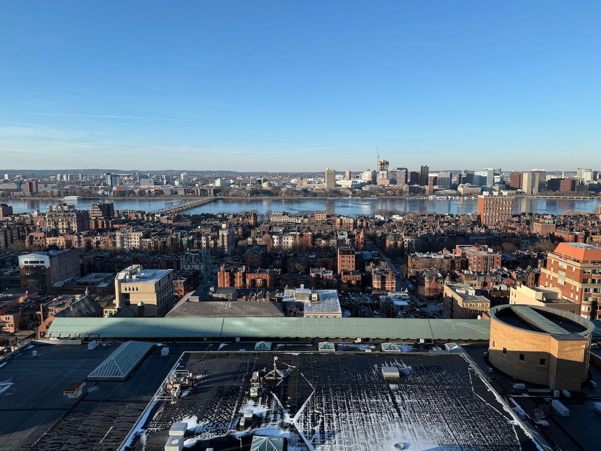 The entire suite had a panoramic view of the Charles River, as it’s quite nice to be this high up.