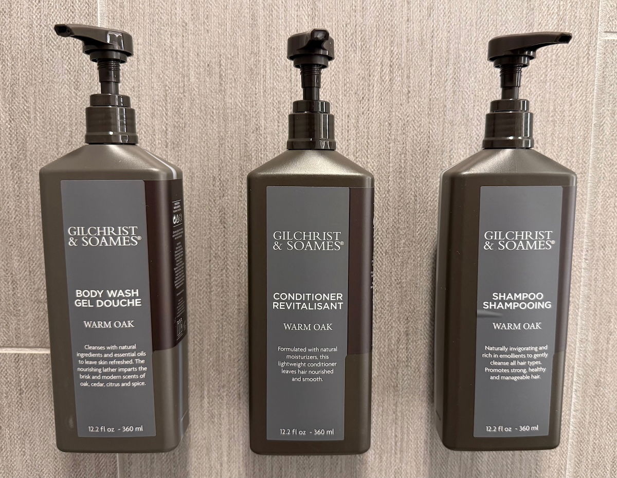 Toiletries were in reusable containers from Gilchrist & Soames.