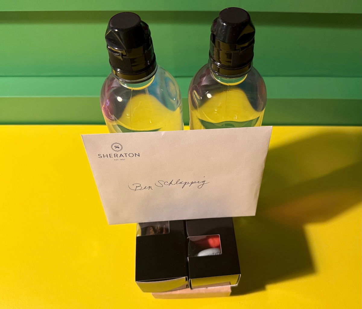 There was a further welcome amenity with macarons and beef jerky (interesting combo!) plus bottled water, presumably on account of my Bonvoy Ambassador status.