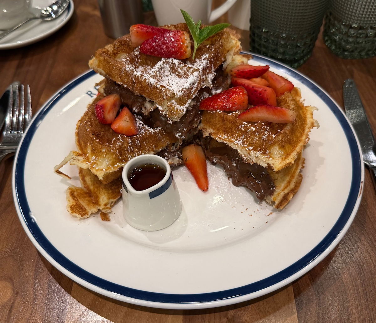 Miles had both the waffles and pancakes, which he enjoyed (though the portion of waffles was way too big — oops!).