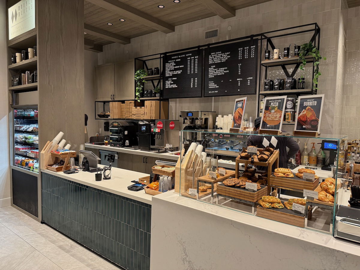 Lastly, Double Blacks is the coffee shop and grab-and-go venue. It’s located next to the gym, and it’s open daily from 6AM until 5PM. This space has barista coffee, pastries, sandwiches, salads, and more, so it’s a great place to grab a quick bite.