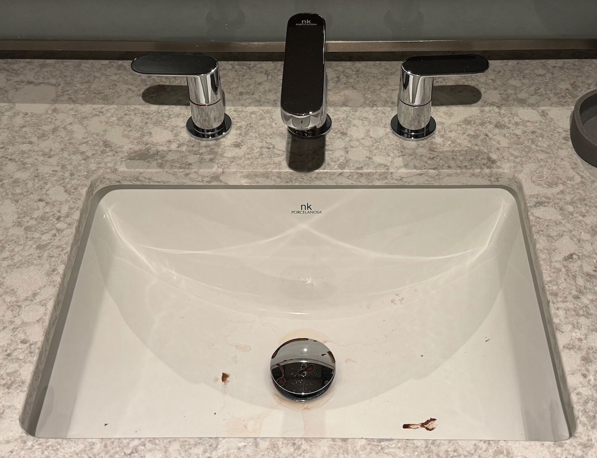 Another morning I got Miles a hot chocolate from the lobby, and before we left the room, I poured out the leftovers in the sink, as we were running out the door. Okay, I should’ve probably been more considerate with making sure everything was clean, but below is what the sink looked like after housekeeping came and cleaned the room…